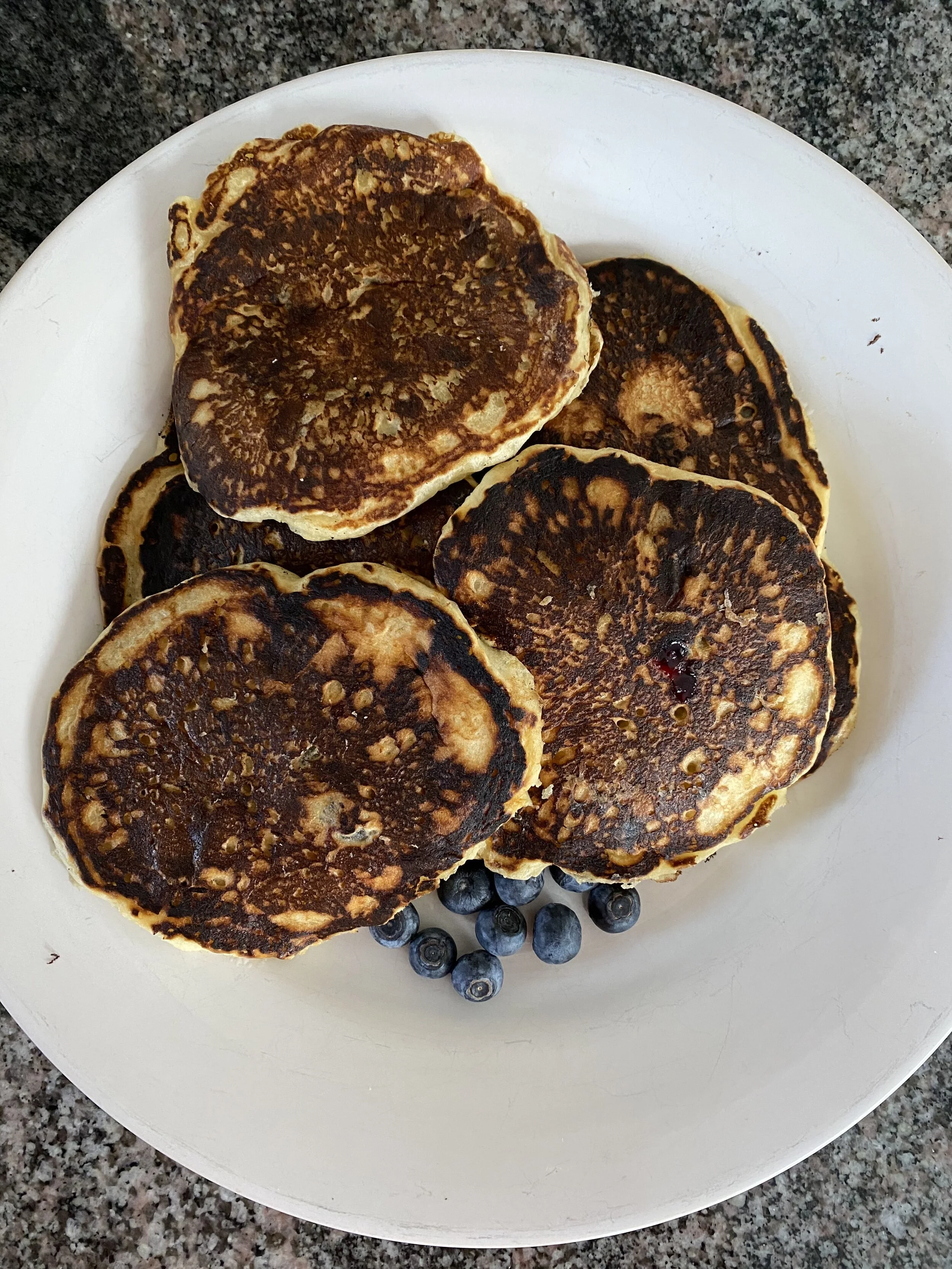 We used a recipe from foodnetwork.com - The Best Buttermilk Pancakes. They were delicious especially with the addition of the plump blueberries. Bonus: I could use all of the benefits of berries particularly for my memory. Enjoy!